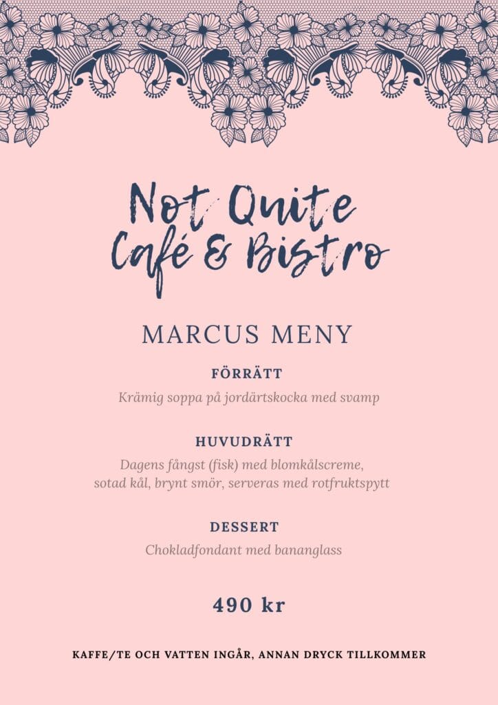 Sloydtrukken kan bokas under hela året och Not Quite Café planerar att hålla öppet vissa kväller i höst. Håll utkik här och på Not Quite Cafés sociala medier. Under lågsäsong är det också möjligt att boka middag för större sällskap. Kontakta caféet för meny och pris på cafe@notquite.se .