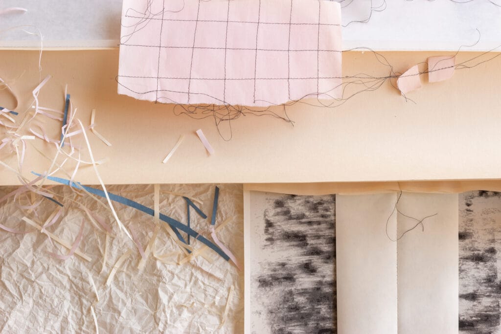 Materialet är papper från brukets tidigare produktion som vi bearbetar, med våra händer och med nya ögon.